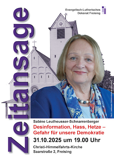 Die Kanzelrede hält in diesem Jahr die ehemalige Bundesjustizministerin Sabine Leutheusser-Schnarrenberger. Sie ist bis heute eine mahnende und nachdenklliche Stimme, wenn es um die Freiheitsrechte geht, die unsere Demokratie ausmachen. Darum soll es auch in der Kanzelrede gehen: um die Gefährdung unserer liberalen Demokratie durch Desinformation, Hass und Hetze.