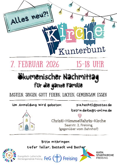 Samstag, 7. Februar, 15 -18 Uhr im evangelischen Gemeindehaus Christi Himmelfahrt, 85354 Freising, Saarstr. 2
