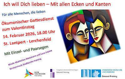 Herzliche Einladung an alle Menschen, die lieben, zum ökumenischen Gottesdienst am Samstag, 14. Februar 2026, um 18 Uhr in St. Lantpert in Lerchenfeld!