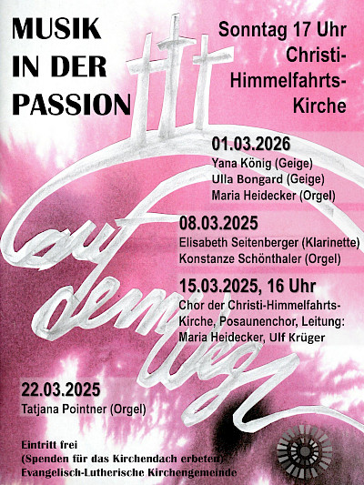 Zu hören sind Organistinnen, Solistinnen und die verschiedenen Ensembles der Gemeinde, dazu Texte und Gedanken zur Passionszeit.